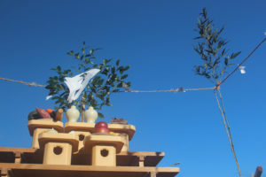 お供え物ができたらお墓参りをし、夕方になったら先祖を家に迎えるために自宅の門前で迎え火を焚きます。